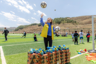 石薇薇女士:很高興能來到瓦吾小學(xué),希望我們倉促之下準(zhǔn)備的小小球鞋、足球,能對(duì)你們實(shí)現(xiàn)足球夢(mèng)想有所幫助!看到你們的笑容,我真切感受到自己在做一件有意義的事。希望以后我可以帶著自己的孩子,再次來與你們相見!