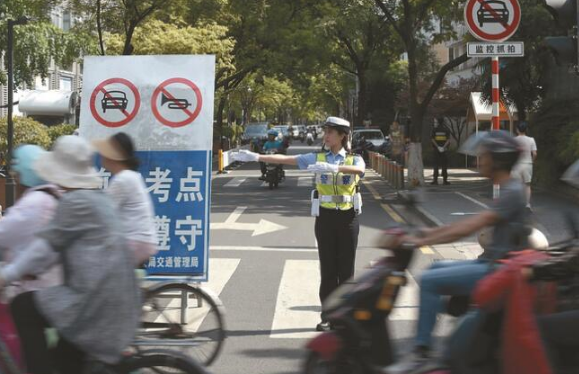 為了保障考生擁有安靜的考試環(huán)境,考試期間,各地公安交警部門嚴查考場周邊道路車輛闖禁區(qū)、非法改裝、違規(guī)鳴笛、轟鳴疾駛等違法行為。南京交警還明確,高考三天全市渣土車輛一律停運,最大限度地減少交通噪聲干擾。