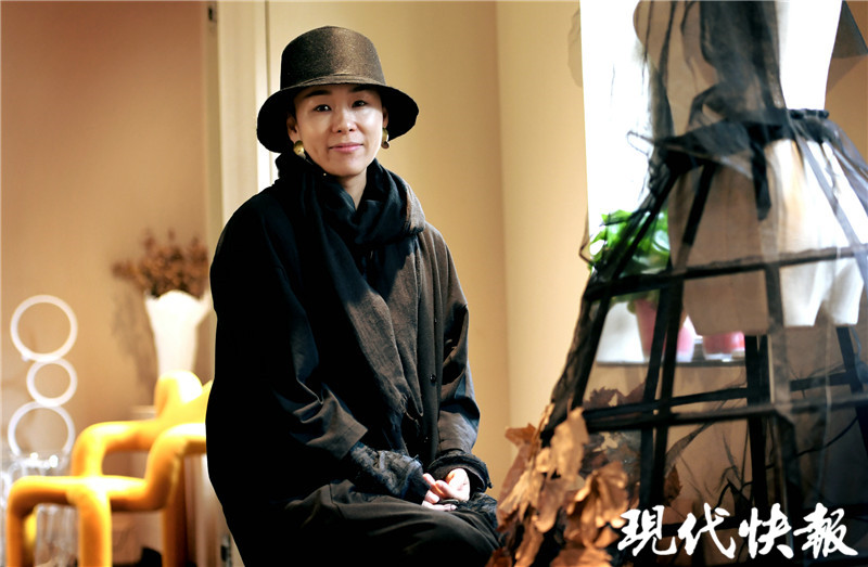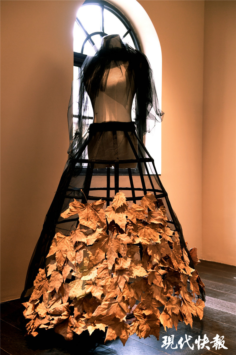 秋意漸濃,南京又到了最美的季節(jié)。在赤壁路一座民國建筑里,“舊衣改造師”寶兒正在用梧桐葉和舊紗料做一件裙子。一個月前,她從原來的工作室搬到這里,連同院里的梧桐一起帶來。“這件裙子我想在新工作室的開業(yè)典禮上展出,想用這種方式紀(jì)念過往的時光。”在窗外樹影的映襯下,剃著光頭、帶著夸張耳飾的寶兒平添一份從容。隨著年齡的增長,寶兒對時間和舊物有了更深的領(lǐng)悟,這也是她一直堅持做“舊改”的原因。
