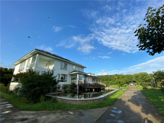 下車(chē)后,抬眼望去,這里真是一塊風(fēng)水寶地,四周全部栽滿了大樹(shù),有香樟、水杉、泡桐、楊柳。中間一片開(kāi)闊地,蓋了兩棟小洋樓,樓前還有一個(gè)魚(yú)池,各種小金魚(yú)在嬉戲,全然不顧有人驚擾。