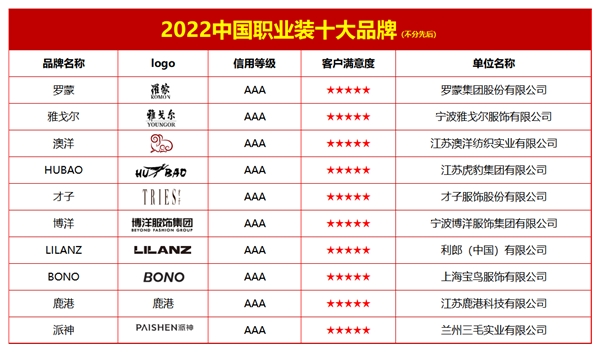 隨著時(shí)代的發(fā)展,職業(yè)裝不再只是簡單的制服,需求逐漸向“品質(zhì)、時(shí)尚、舒適、健康”方向轉(zhuǎn)變,需要體現(xiàn)單位企業(yè)、品牌的文化和特色,更要滿足個(gè)性化、定制化需求,從材質(zhì)的選擇到款式的設(shè)計(jì),職業(yè)裝逐漸呈現(xiàn)出多樣化、工藝化、綠色環(huán)保等多重需求。職業(yè)裝招投標(biāo)市場發(fā)展迅速,市場規(guī)模不斷擴(kuò)大,競爭日益激烈,職業(yè)裝品牌化發(fā)展成為企業(yè)贏得訂單和客戶信任的關(guān)鍵,品牌化發(fā)展可以幫助企業(yè)提升品質(zhì)和品牌形象,擴(kuò)大市場份額,提高產(chǎn)品附加值,推動(dòng)產(chǎn)品與服務(wù)升級(jí),形成品牌認(rèn)同和信賴,提高用戶對(duì)產(chǎn)品的價(jià)值認(rèn)可度。“2022中國職業(yè)裝十大品牌”榜單權(quán)威發(fā)布旨為推動(dòng)我國服裝行業(yè)高質(zhì)量可持續(xù)發(fā)展進(jìn)程,促進(jìn)更多服裝企業(yè)加強(qiáng)自主品牌建設(shè)和產(chǎn)品優(yōu)化,提升品牌在招投標(biāo)市場的知名度、美譽(yù)度和影響力,樹立“中國品牌”標(biāo)桿,發(fā)揮品牌引領(lǐng)帶動(dòng)作用,為廣大招標(biāo)采購單位需求方、代理加盟商、經(jīng)銷商及社會(huì)各界提供重要驗(yàn)證參考。具體如下: