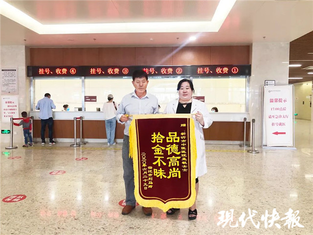 6月29日,失主劉先生專程將錦旗送到了新沂市中醫(yī)院,希望能有機會可以當面向孟敏道謝。當天孟敏休息不能趕來,同事代為收下了這面錦旗。
