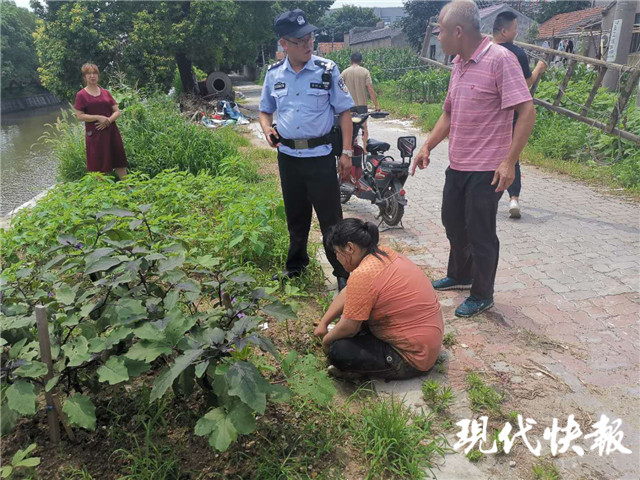 在岸上的陳老伯則就地取材找來竹竿,并及時傳遞給在水中的徐老伯。在兩人十多分鐘的配合下,最終落水女子被拖上了岸。兩人立即又對落水女子進(jìn)行了拍背急救,直到女子吐出兩大口塘水后,兩人才松了一口氣。此時接到報警的派出所民警也趕到了現(xiàn)場。