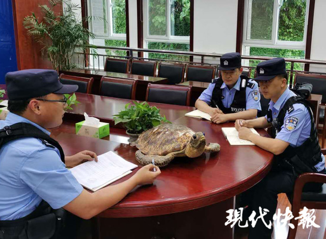 2019年3月,連云港市公安局云臺山景區(qū)分局花果山景區(qū)派出所民警在日常巡查的時候,發(fā)現(xiàn)轄區(qū)中有一間店鋪存在使用海龜標本祈福牟利的行為,隨后民警委托了南京森林公安進行了標本物種的鑒定,鑒定發(fā)現(xiàn)標本是綠海龜,屬于國家二級保護動物。