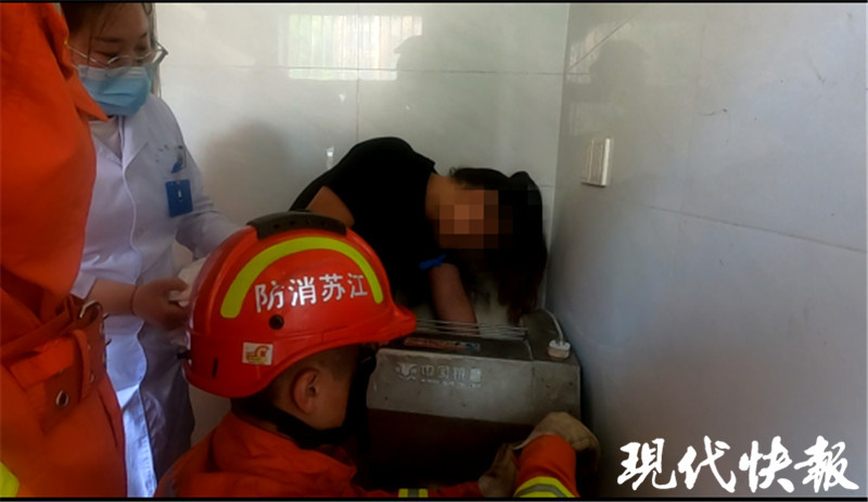 △女子手被卡機器 消防員施救