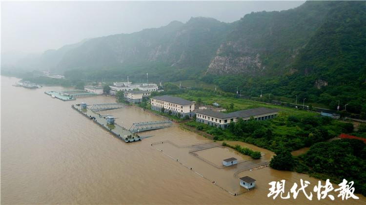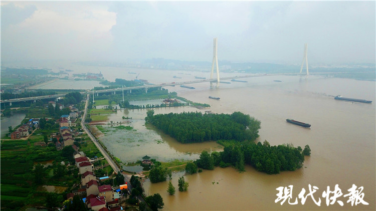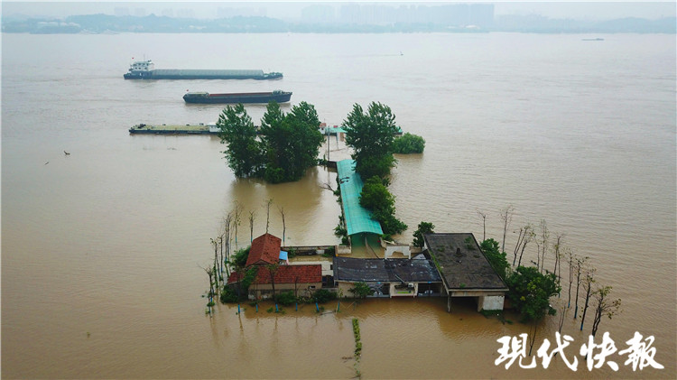 (記者 陸雨瀟/文 趙杰/攝)汛期,南京河湖水位不斷上漲。7月14日上午,現(xiàn)代快報記者來到南京幕燕濱江風(fēng)光帶,這里,江水已漫過觀景平臺,只剩樹木的枝葉露出江面。通往觀景平臺的道路拉起了長長的警戒線。