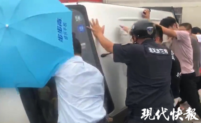面包車側(cè)翻司機被困 接下來的一幕溫暖人心