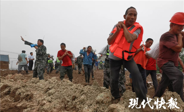 5萬條編織袋、400噸石頭、8輛大型機(jī)械、10輛運(yùn)土車、5000多方土方,從21日上午8點(diǎn)到22日凌晨4點(diǎn),近千名民兵和村民搶險20小時,一刻沒有停歇。22日凌晨4點(diǎn),在險情得到控制后,機(jī)械隊伍繼續(xù)鉚足了勁施工加固,運(yùn)輸、填土、翻土……機(jī)械師傅們已經(jīng)忙了近30個小時了。