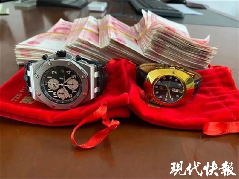 △警方追回的贓物贓款,前左為價(jià)值15萬(wàn)的名表。通訊員供圖