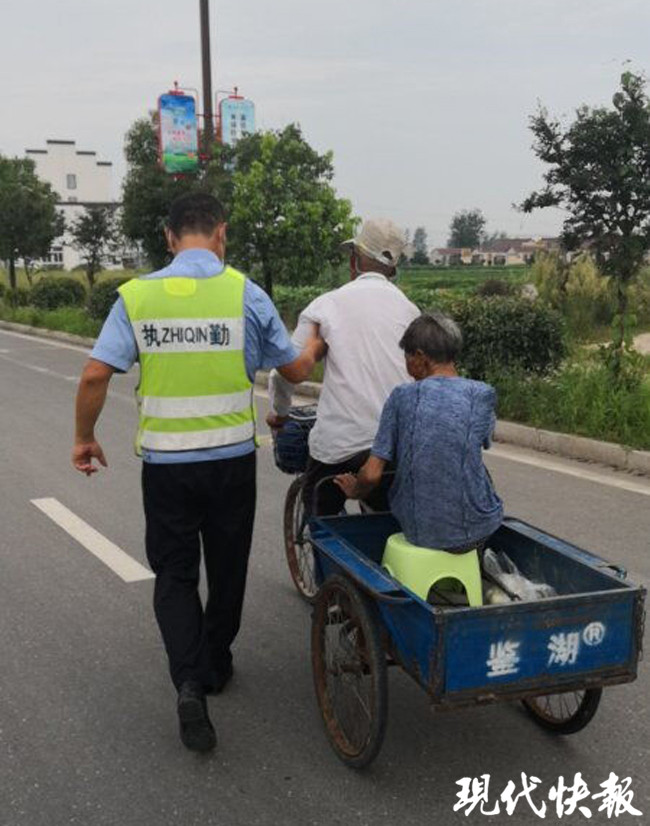 “早知這樣就不去了,這下如何是好……”老奶奶哭著對(duì)交警說,經(jīng)過民警的施救,老漢逐漸精神恢復(fù)了正常。當(dāng)120救護(hù)車趕到現(xiàn)場(chǎng)后,醫(yī)護(hù)人員發(fā)現(xiàn)老漢沒有大礙,只是天熱中暑。由于老漢身體并無大礙,便執(zhí)意要自己騎車離開。為防不測(cè),民警攙扶著老人騎了一段路程后,又駕駛警車默默一路護(hù)送,發(fā)現(xiàn)老漢真正安全后,這才駕車離開現(xiàn)場(chǎng)。