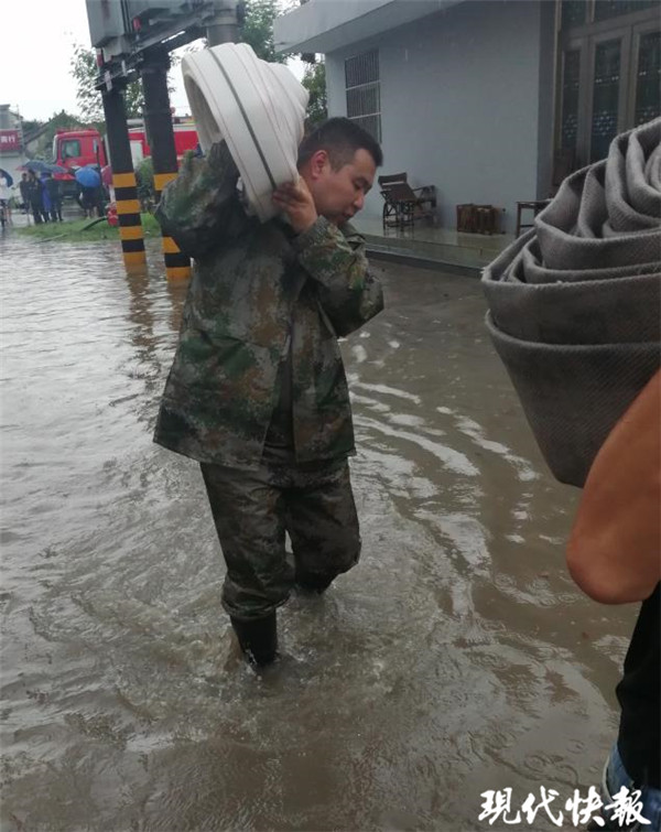暴雨突襲江蘇高郵 180名民兵火速排澇搶險(xiǎn)