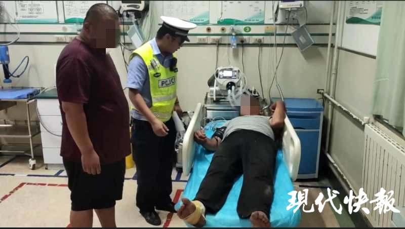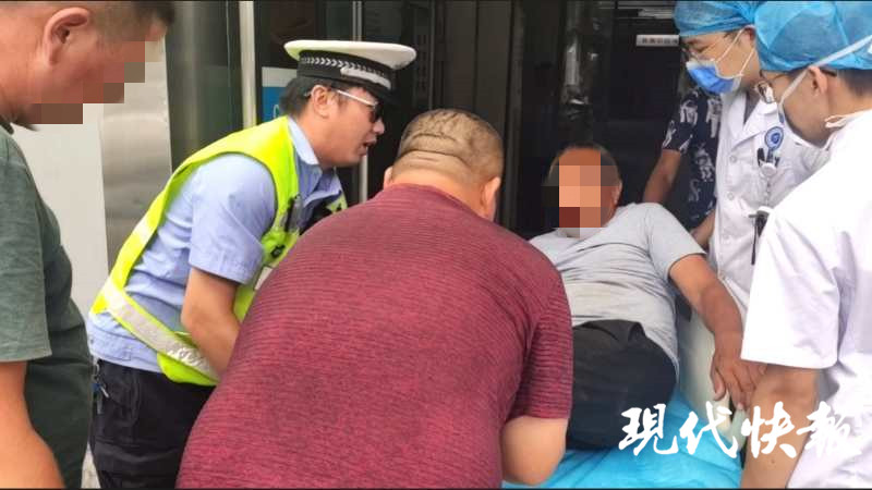 當(dāng)天上午11點(diǎn)半左右,徐州交警治安卡口大隊火花檢查站民警在路上執(zhí)勤時,突然有一輛灰色轎車停在他們跟前,司機(jī)下車向他們呼救,稱自己岳父被除草機(jī)割傷了,希望交警幫助開道送醫(yī)。