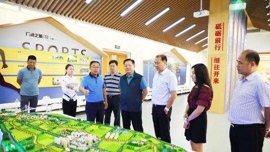 艾會(huì)長(zhǎng)一行在世業(yè)鎮(zhèn)旅發(fā)副總虞亞軍陪同下,參觀鎮(zhèn)服務(wù)中心。在中心展館,艾會(huì)長(zhǎng)一行詳細(xì)觀看了世業(yè)洲建設(shè)規(guī)劃全景沙盤(pán)。在觀看黨建展廳時(shí),艾會(huì)長(zhǎng)駐足良久,對(duì)“一村一品”特色黨建工作深深贊許。