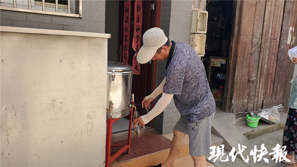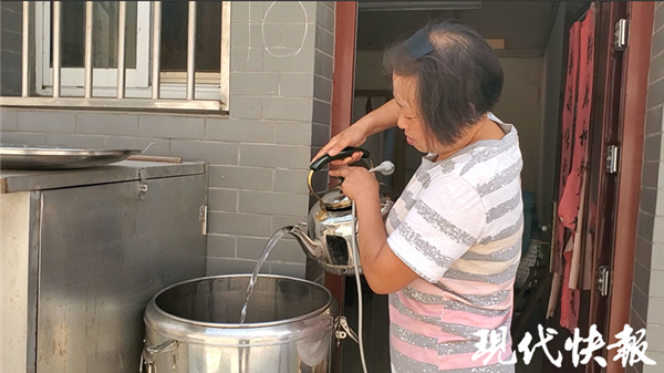 “現(xiàn)在氣溫高,每天至少兩大茶桶水,燒十壺開(kāi)水才能灌一桶。”趙金花在一家單位打工,每天中午休息的時(shí)候,她都要趕回來(lái)再燒一次開(kāi)水,每次都忙出一身汗。