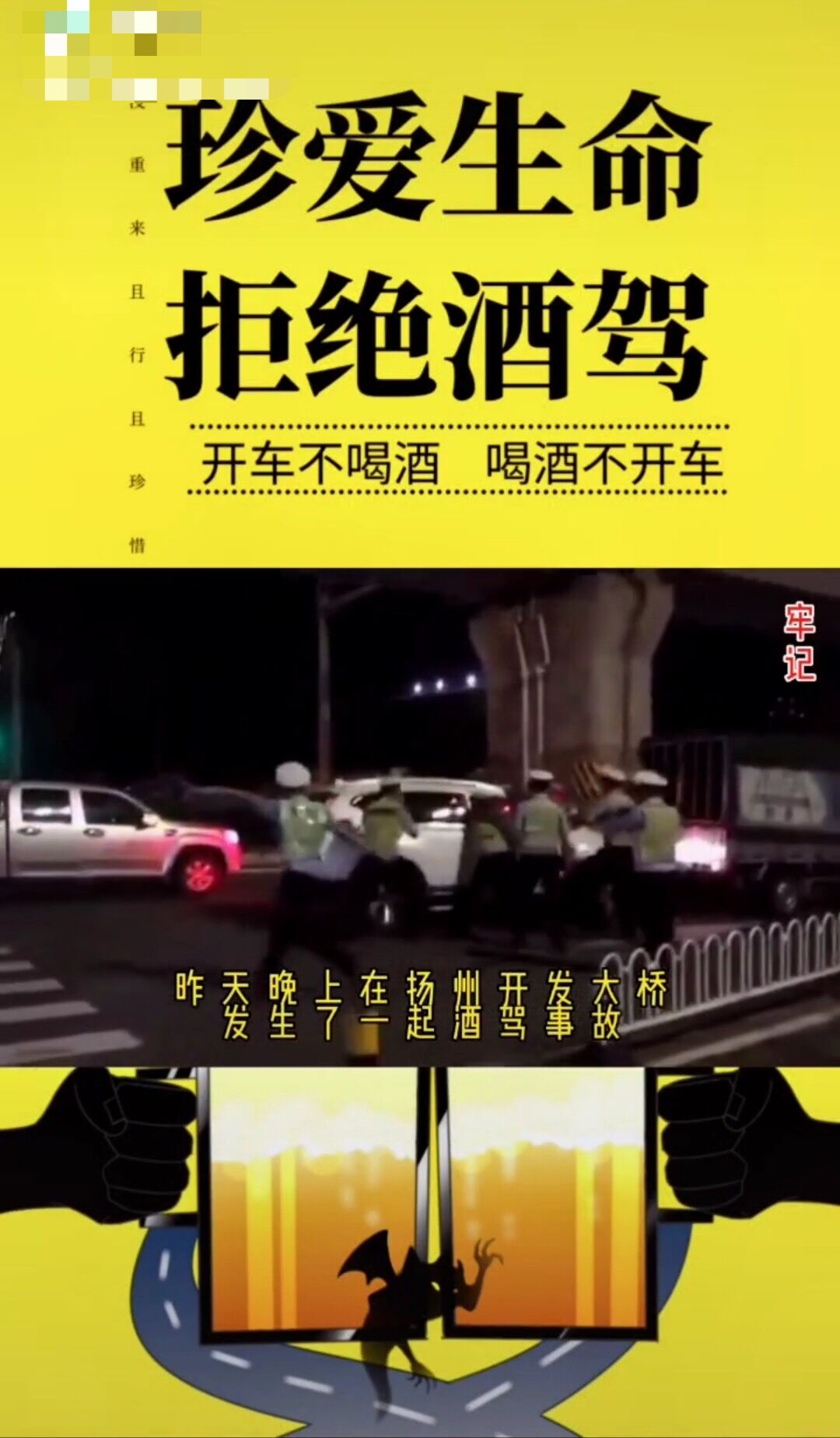 在短視頻中,還赫然寫著:“昨天晚上在揚(yáng)州開發(fā)大橋發(fā)生了一起酒駕事故。”如此驚險(xiǎn)一幕,立刻引發(fā)了揚(yáng)州市民的關(guān)注。