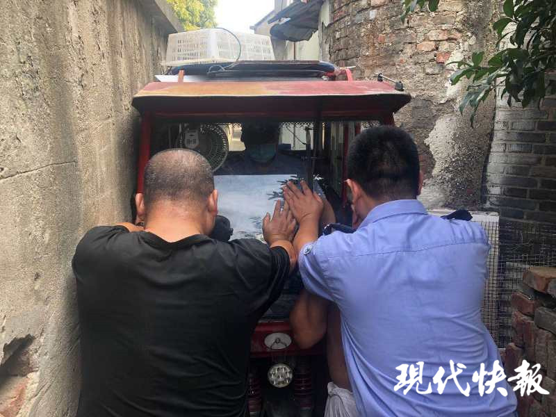 原來,老人是給人搬家送貨的,當(dāng)時想從這邊的巷子里抄近路,剛開進(jìn)巷子時,老人也發(fā)現(xiàn)路太窄了,但因趕時間,想著沖一沖就過去了,結(jié)果開到巷子中間卡住了,進(jìn)退兩難,人也沒法出來。