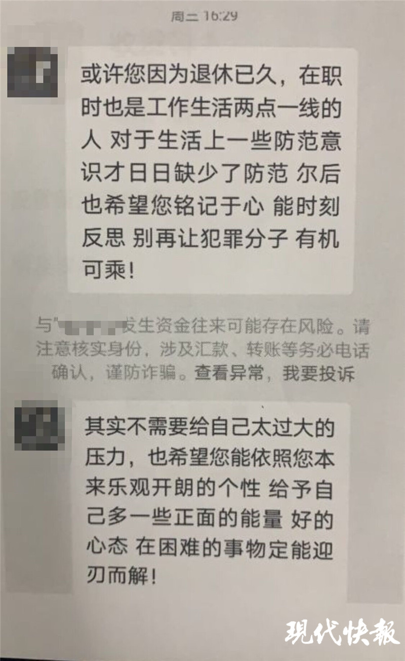 王大媽來到洪武路派出所報警后,告訴民警騙子曾在作案過程中,像模像樣地勸她不要因“涉嫌犯罪”而慌張,還提醒她要提高防范意識。