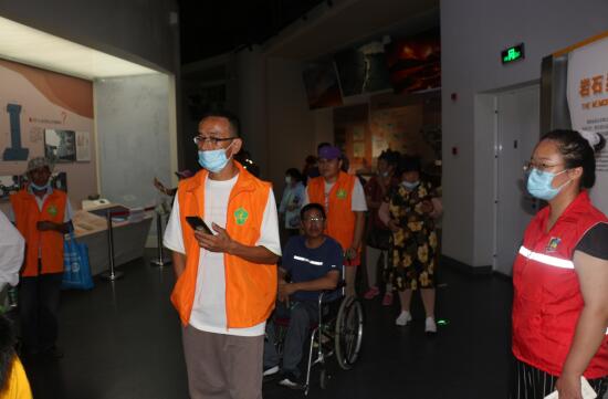 上午9點(diǎn)左右,殘疾朋友們陸續(xù)進(jìn)入博物館,義工為大家分發(fā)著口罩,為他們登記名字、測量體溫,接著引導(dǎo)到集合區(qū)域后,戴小勇主席與江醫(yī)生分別跟大家交待了活動流程與注意事項(xiàng),之后聯(lián)系了博物館特別為我們殘障人士安排的金牌講解員李女士前來引領(lǐng)我們殘友隊(duì)伍進(jìn)館。這次活動博物館方面給所有殘友家人與志愿者全部免去參觀門票費(fèi),在此也代表所有隊(duì)員們向館方表示感謝。