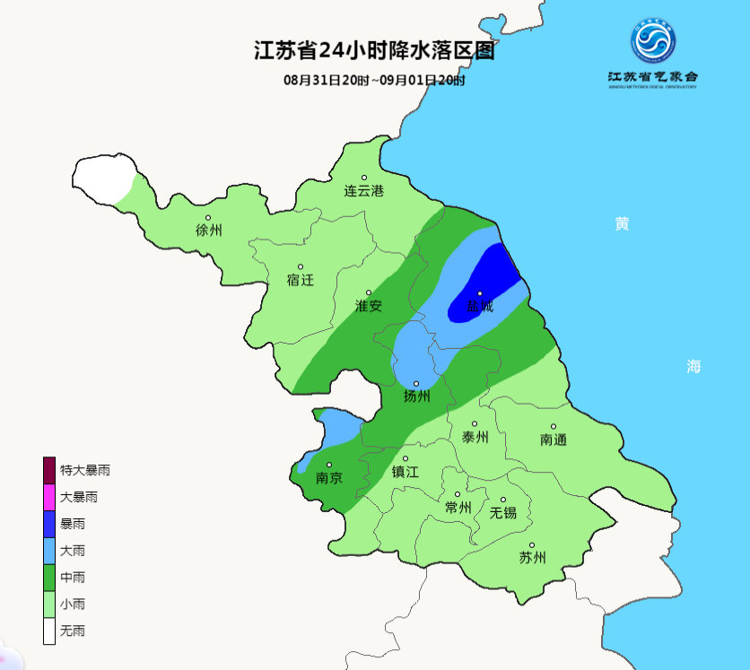 臺(tái)風(fēng)雖強(qiáng),不過對(duì)江蘇的影響較小。江蘇省氣象臺(tái)預(yù)報(bào),受“美莎克”外圍及高空槽共同影響,8月31日到9月2日江蘇多雷陣雨天氣。