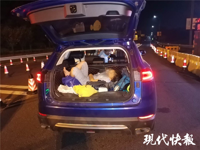 (通訊員 徐港 記者 王瑞)8月31日凌晨1點左右,南京交警高速十二大隊民警在寧宣高速沙塘收費站執(zhí)勤檢查時,發(fā)現(xiàn)一輛SUV后備箱里,竟然翹出來一條腿,把民警嚇了一跳。仔細一看,原來是孩子爬到后備廂和行李睡在一起,而駕車的父親卻壓根不知情。