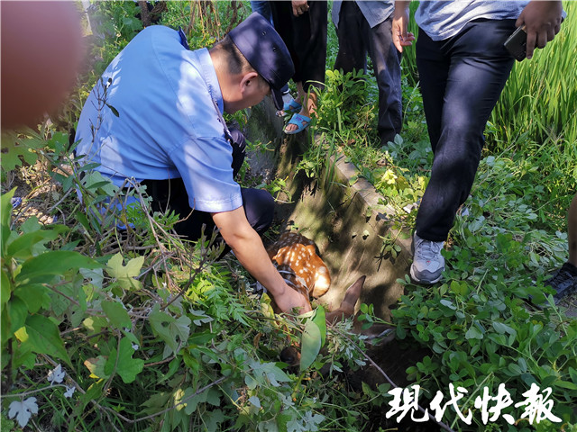 經(jīng)農(nóng)林部門的專業(yè)人員確認(rèn),這是一頭梅花鹿,屬于國家一級保護動物,但不知從何而來。目前,這頭鹿已被送往南通森林野生動物園。