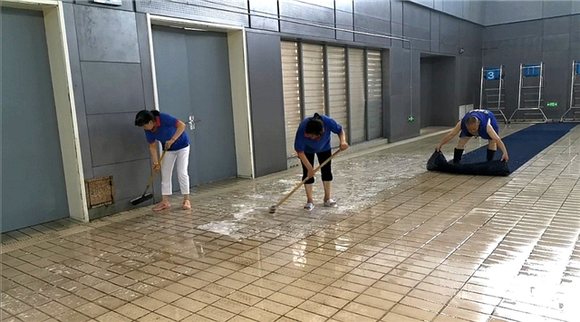 9月4日一早,現(xiàn)代快報記者來到了位于通甫路的淮安市體育中心游泳館。4名工作人員正在館內(nèi)做清潔,他們把墊子卷起,撒上清潔粉和消毒用品,用刷子清理每一塊地磚,再用水槍沖洗,整個過程需要4個小時。體育中心主任助理賈農(nóng)告訴記者,這是每周一次的大清潔,此外,每天還有日常清潔。消毒劑、消毒片、水循環(huán)儀器等清潔設(shè)備是一筆大開支。