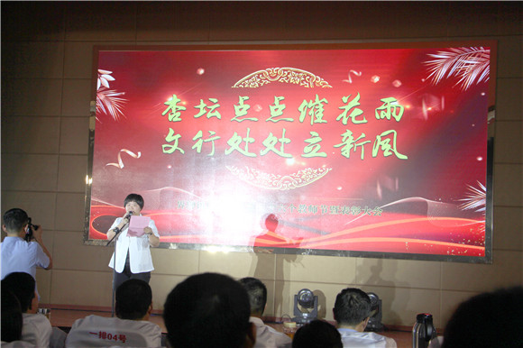 9月8日下午,大會在鎮(zhèn)文化廣電中心舉行。參加慶祝表彰大會的有鎮(zhèn)黨委、政府、人大班子成員;全鎮(zhèn)各學(xué)校、幼兒園教師代表;受表彰的先進個人及其親屬;家長代表;鎮(zhèn)直辦各單位、各村(居)主要負責人;以及關(guān)心、支持全鎮(zhèn)教育發(fā)展的社會各界人士。大會還邀請了濱海縣教育局副局長王青、初教科長朱衛(wèi)東到會觀摩指導(dǎo)。