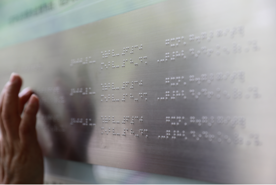 盲人朋友途經(jīng)這些公交站牌時,只要用手觸摸站牌上的盲文,“本站名、途經(jīng)線路番號、起訖點信息、服務(wù)時間”等等信息了然于心,方便視覺障礙者了解所要乘坐的站點公信息。