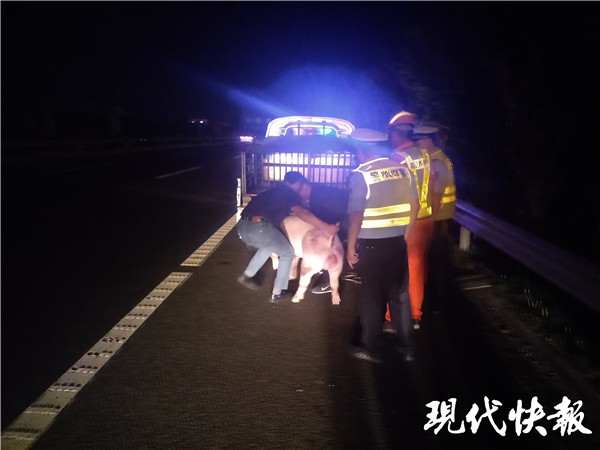 200多斤“二師兄”高速上跳車 交警上路捉豬