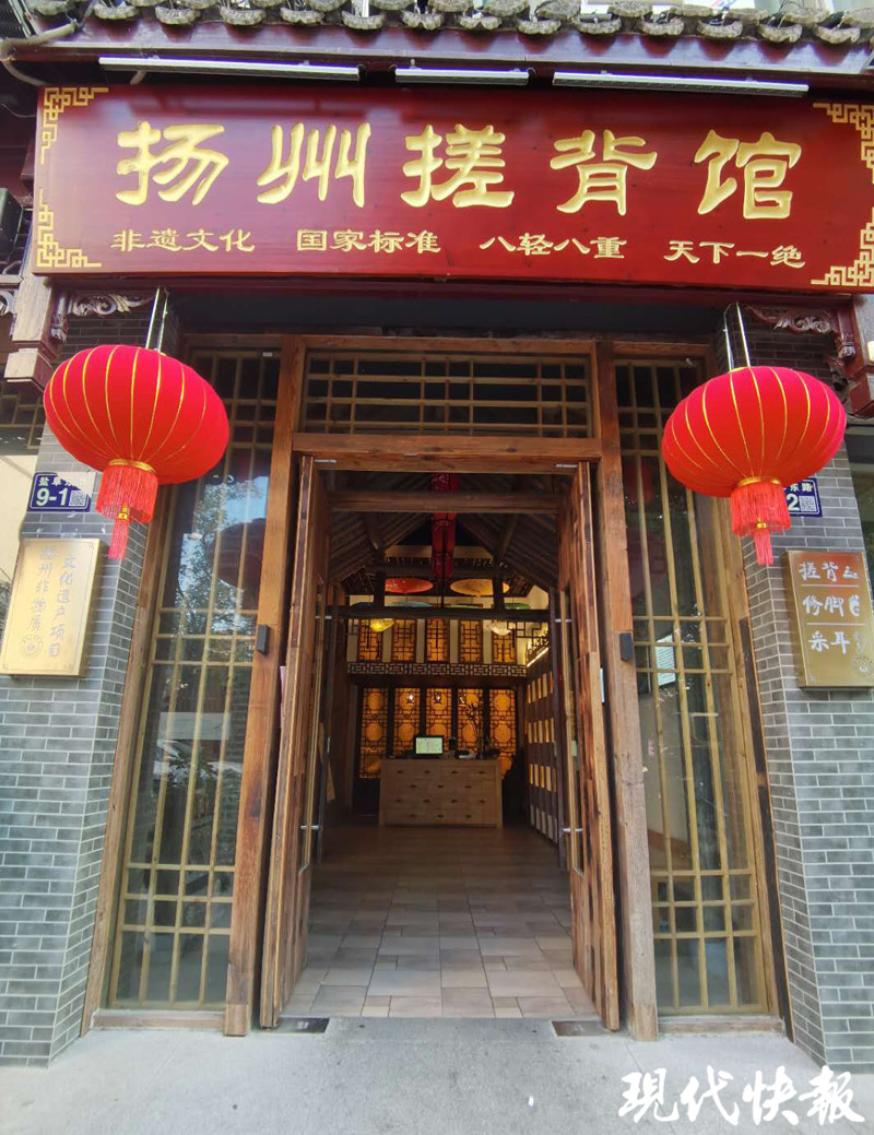 說(shuō)到搓背,很多人首先想到的是浴室,在水汽蒸騰的空間,搓背師傅拿著搓背巾,為浴客搓去身上的污垢。這兩年,搓背這一傳統(tǒng)沐浴技藝也走出了大澡堂,成為游客、市民的休閑新體驗(yàn),受到了廣泛歡迎。2018年初,揚(yáng)州首家搓背館在東關(guān)古渡附近開業(yè),2019年8月,在個(gè)園附近又開出了第二家搓背館,今年4月,位于揚(yáng)州瘦西湖風(fēng)景區(qū)旁的瘦西湖新天地商業(yè)廣場(chǎng)又開了當(dāng)?shù)氐谌掖瓯仇^。