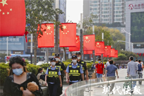 (通訊員 寧公宣 記者 顧元森)10月1日,國慶假期正式開啟。此次長假是疫情常態(tài)化防控之后的第一個長假,群眾出行意愿集中釋放,客流、物流、車流大幅增加,安保工作面臨考驗。南京警方在提高全市治安防控勤務(wù)等級的基礎(chǔ)上,進一步加強社會治安防控力度,強化街面、商貿(mào)區(qū)和景點等地區(qū)的巡邏防范,維護各旅游景點和商業(yè)區(qū)等治安交通秩序。截至當天下午3點左右,南京市治安秩序良好,未接報重大刑事案件、惡性交通事故及重大災害事故。