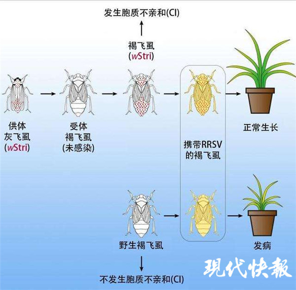 南京農(nóng)業(yè)大學(xué)植物保護(hù)學(xué)院洪曉月課題組找到了一種新方法來對付褐飛虱,即給它注射細(xì)菌,得到一個新的褐飛虱種群。該種群與野生褐飛虱交配,它們產(chǎn)下的后代“不能生孩子”。 相關(guān)研究成果近日發(fā)表于國際學(xué)術(shù)期刊《當(dāng)代生物學(xué)》上,為農(nóng)業(yè)害蟲的防治提供了新的方向。