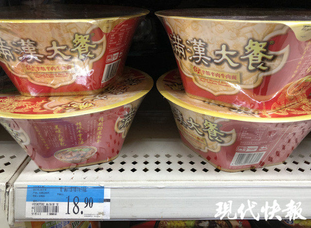 在新街口另外一家大型綜合超市,貨架上主要是傳統(tǒng)方便面,單價多在5元左右。其中只有兩款方便面價格較貴,有一款是康師傅的,一盒20元,重量246g;另一款統(tǒng)一方便面,重量180g,價格為18.9元。這兩款都是油炸方便面,大肉塊、高湯包是宣傳的重點。超市導(dǎo)購員告訴現(xiàn)代快報記者,由于價格比較高,這兩款方便面銷量一般。