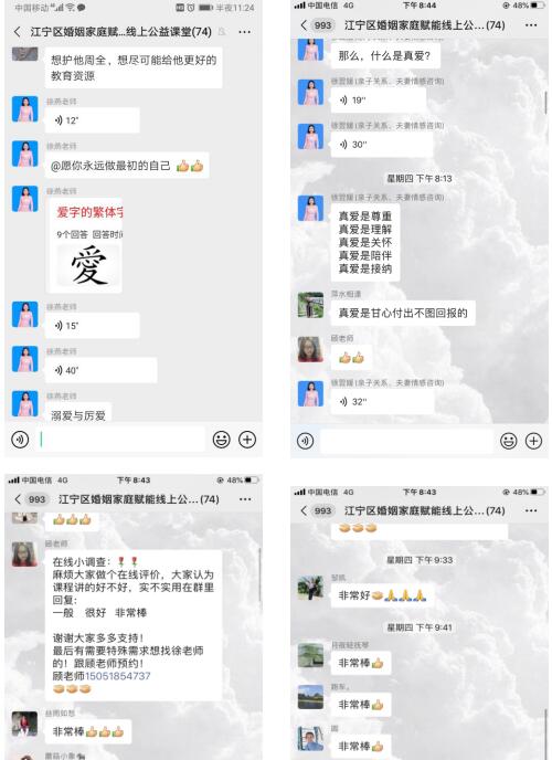 本次線上輔導(dǎo)課由南京江寧區(qū)婚姻登記中心婚姻家庭輔導(dǎo)室的國(guó)家二級(jí)心理咨詢(xún)師、家庭教育指導(dǎo)師徐燕老師擔(dān)任授課,現(xiàn)場(chǎng),徐燕老師運(yùn)用生動(dòng)幽默、通俗易懂的語(yǔ)言首先向線上的聽(tīng)眾們深刻闡釋了愛(ài)的含義,讓大家對(duì)愛(ài)的理解更加深刻,其次,通過(guò)對(duì)溺愛(ài)和厲愛(ài)的分析,讓家長(zhǎng)們判斷目前自己愛(ài)孩子的方式是否恰當(dāng),是否是真正意義上的愛(ài),并通過(guò)兩個(gè)因?yàn)槟鐞?ài)和厲愛(ài)真實(shí)發(fā)生的事件,讓家長(zhǎng)們意識(shí)到無(wú)論是哪種不恰當(dāng)?shù)膼?ài),都很可能造成令人惋惜、無(wú)法挽回的結(jié)局,最終影響孩子的健康成長(zhǎng)甚至未來(lái),所以愛(ài)的方式很重要。最后徐老師通過(guò)例證,讓家長(zhǎng)們明白如何去愛(ài),告訴大家真愛(ài)是尊重、真愛(ài)是理解、真愛(ài)是關(guān)懷、真愛(ài)是陪伴、真愛(ài)是接納,同時(shí)為進(jìn)一步構(gòu)建和諧健康的親子關(guān)系提出很多建設(shè)性的建議。