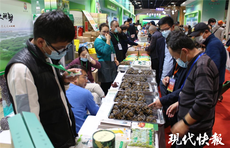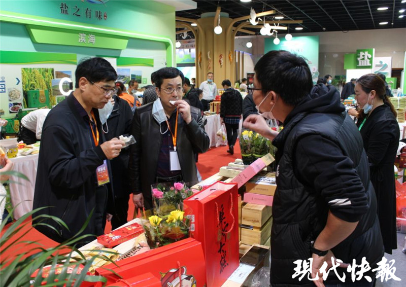 在上海國際農(nóng)展中心鹽城展區(qū)內(nèi),現(xiàn)代快報記者看到,現(xiàn)場有糧油、果蔬、畜禽、水產(chǎn)等多個品類,布展面積超450平方米,優(yōu)質(zhì)農(nóng)產(chǎn)品精品薈萃,射陽大米、大豐海苔、濱海何首烏、鹽都水牛肉、響水西蘭花等集中亮相,前來品嘗、購買的市民絡(luò)繹不絕,上海百姓對“鹽城味道”贊不絕口。