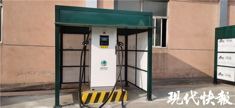 現(xiàn)場,15輛新能源重卡一字排開,都已經(jīng)換上了新能源車牌,車一旁還配備了直流充電樁。國電南瑞科技股份有限公司南京用電技術(shù)分公司副總經(jīng)理張浩告訴記者:“從司機操作的角度來說,完全沒有區(qū)別。一輛車充滿一共280度電,一般可以行駛120-150公里。從港口到堆場都是幾公里的路程,行駛里程比較短。充一次電,可以滿足大半天的需求。”在直流充電樁旁,他解釋道:“現(xiàn)在的充電樁基本采取快充的方式,如果這輛車還剩下不到30%的電,插上充電,不到1小時就能充滿了。它還可以通過頂部吊裝的方式換電池,就更快了,幾分鐘就能完成。”