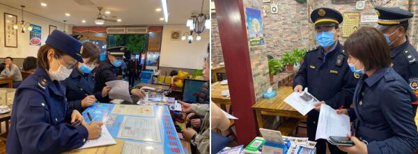 為切實解決群眾反映密切的油煙擾民問題,江寧區(qū)東山街道環(huán)境治理科聯(lián)合綜合執(zhí)法大隊及市場監(jiān)督局東山分局對金盛路沿街餐飲店鋪開展檢查。環(huán)境治理科嚴(yán)格落實環(huán)保要求,規(guī)范餐飲油煙排放,要求店家安裝油煙凈化器、油水分離器等環(huán)保設(shè)施,避免油煙擾民;由綜合執(zhí)法大隊對店家清洗記錄進行檢查,對相關(guān)材料缺失的餐飲企業(yè)要求其完善清洗臺賬;市場監(jiān)督局東山分局對餐飲店鋪經(jīng)營許可證,從業(yè)人員健康證等相關(guān)證件進行查驗,對存在問題店鋪提出相關(guān)整改要求,在合法合規(guī)經(jīng)營的同時,督促商鋪合法合規(guī)經(jīng)營。