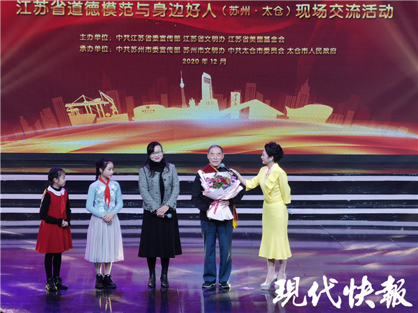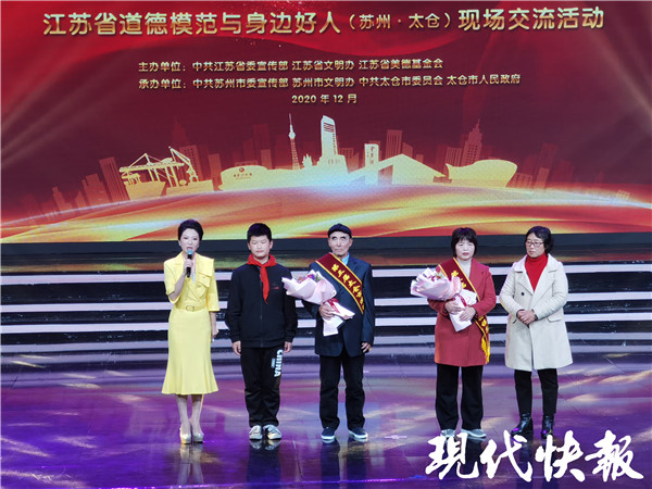 現(xiàn)場(chǎng)還發(fā)布了2020年11月江蘇好人榜和新時(shí)代江蘇好少年名單。來自太倉(cāng)的王耀宏榮獲“江蘇好人”稱號(hào),屈洋獲“新時(shí)代江蘇好少年”稱號(hào)。