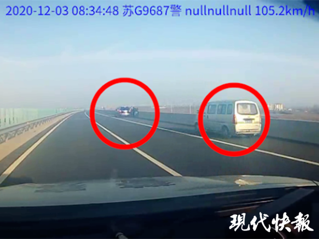 現(xiàn)代快報(bào)記者從連云港交警支隊(duì)了解到,12月3日上午8點(diǎn)34分,連云港交警高速五大隊(duì)民警在長(zhǎng)深高速巡邏時(shí),發(fā)現(xiàn)兩輛汽車停在應(yīng)急車道。交警立即上前查看,發(fā)現(xiàn)兩車不是因?yàn)檐囉泄收喜磐O?,而僅僅是為了靠邊下車聊事情,民警依法對(duì)其中的越野車駕駛員處罰完畢后,接過另一輛面包車駕駛員出示的駕駛證。