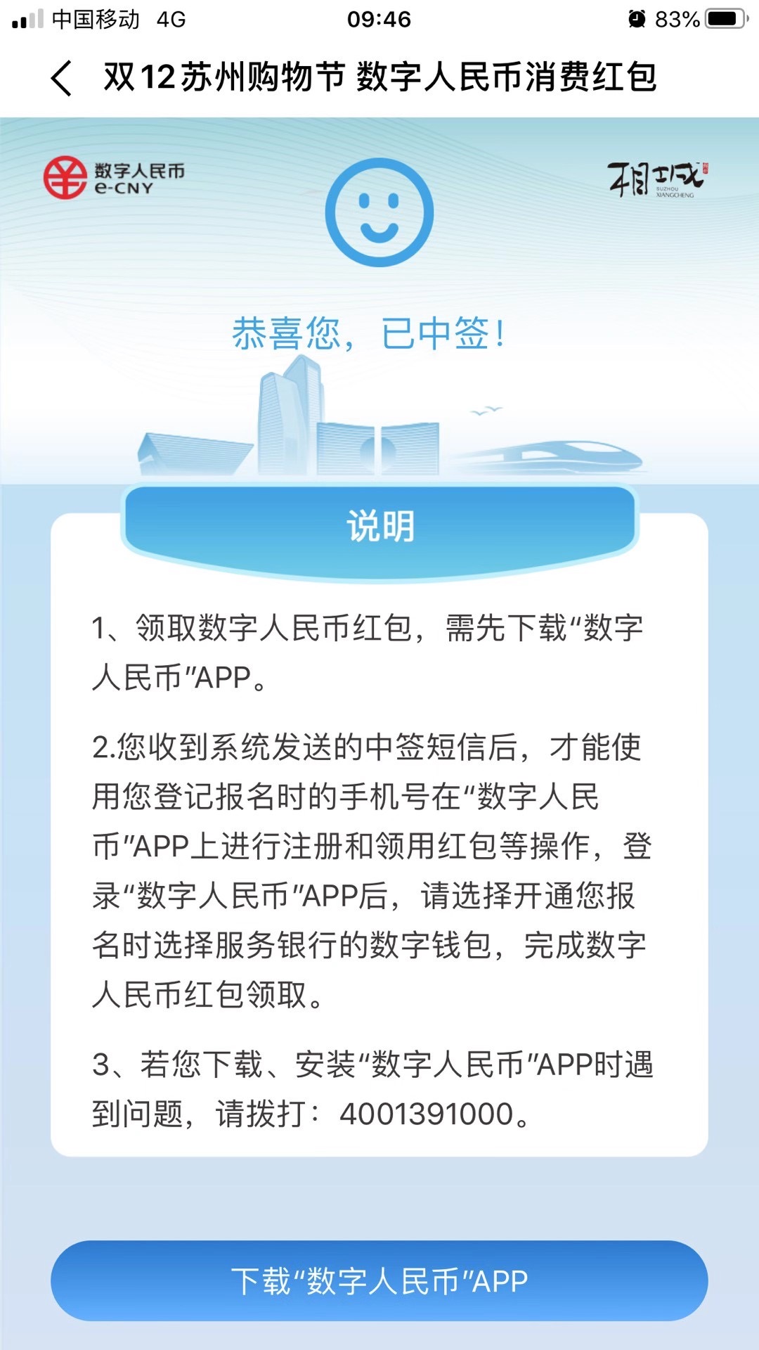 蘇州10萬個(gè)數(shù)字人民幣紅包到賬 你中了嗎