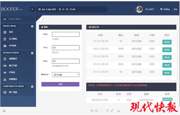 現(xiàn)代快報(bào)記者了解到,該犯罪團(tuán)伙租用境外服務(wù)器搭建網(wǎng)絡(luò)攻擊平臺(tái),并通過發(fā)展代理和出售會(huì)員賬號(hào)的方式牟利。去年下半年以來,共先后向5000多個(gè)網(wǎng)站實(shí)施過流量攻擊,非法獲利100余萬元。