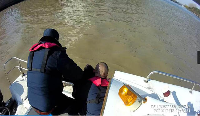 現(xiàn)代快報(bào)記者從常州交通部門(mén)了解到,12月15日中午,常州市交通運(yùn)輸綜合行政執(zhí)法支隊(duì)水上大隊(duì)二中隊(duì)執(zhí)法人員剛結(jié)束上午的巡航,正在吃著午飯。突然,從駐地邊上的村子里傳來(lái)一聲高喊:“快看,常金大橋上有人跳河!”話音剛落,一道黑色的人影快速越過(guò)護(hù)欄,墜入大運(yùn)河中。執(zhí)法人員扔下手中的盒飯,抓起救生衣套上,跳入摩托艇,調(diào)轉(zhuǎn)船頭直沖人員落水點(diǎn)。