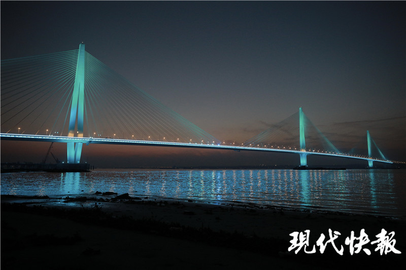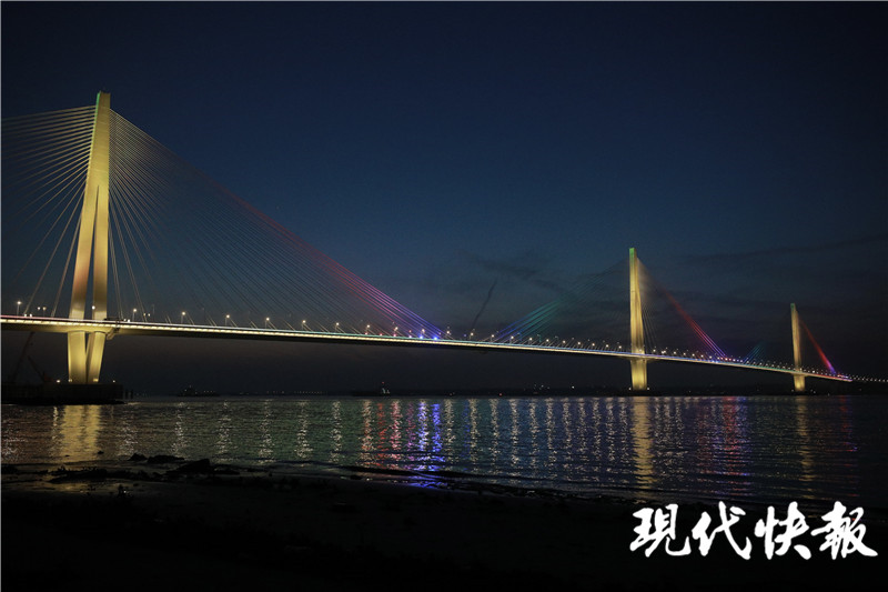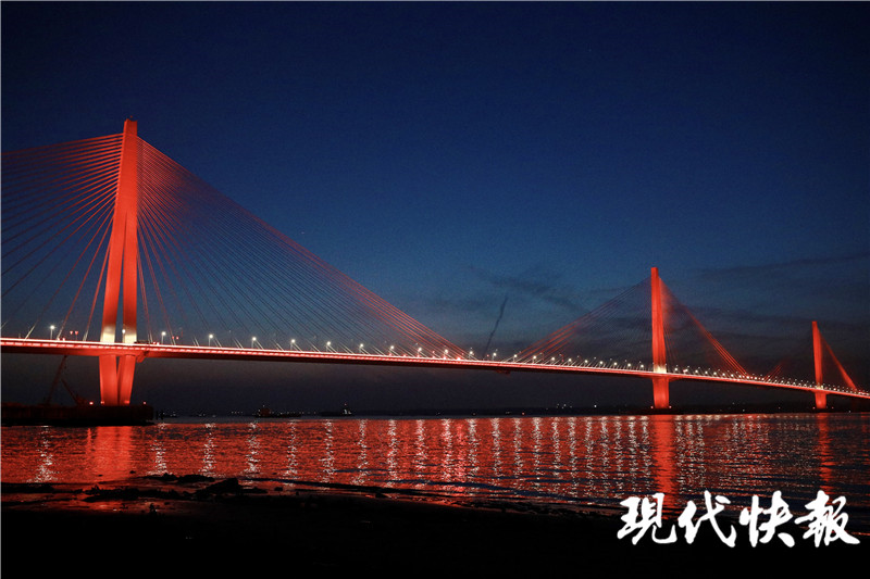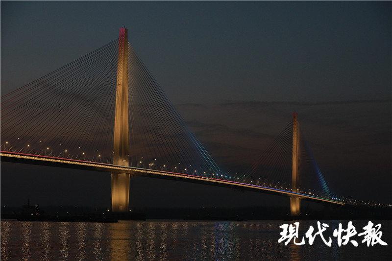 (記者 潘榮 /文 劉暢 /攝)南京江心洲長江大橋(長江五橋)開通在即!12月22日17點,江心洲長江大橋的燈光準(zhǔn)點亮起,進(jìn)行亮燈調(diào)試,流光溢彩的索塔與橋面交相輝映,如彩色的長龍橫臥江面,與城市夜景融為一體,曼妙無比?,F(xiàn)代快報記者了解到,目前,江心洲長江大橋的夜景照明工程正式完成調(diào)試。