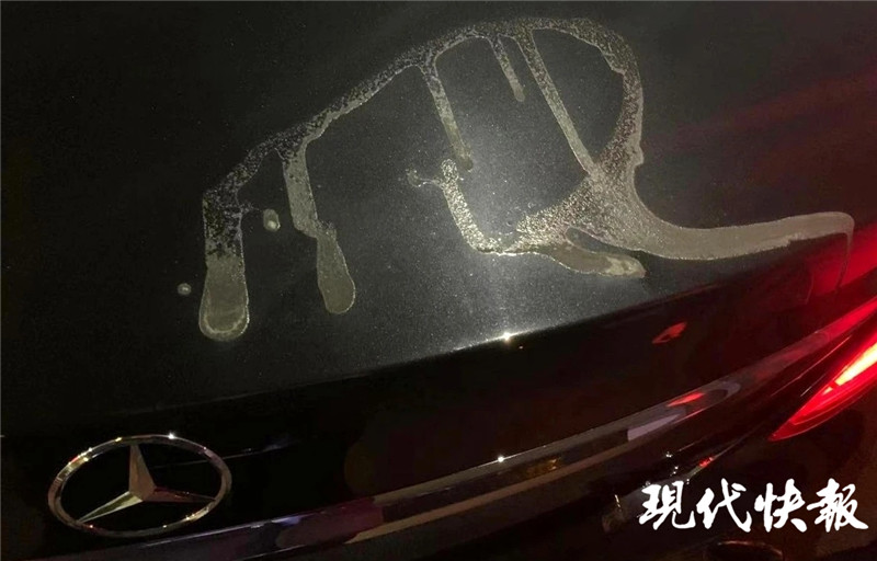 現(xiàn)代快報記者獲悉,近日,家住泰州靖江市橫港路的李某準備開車出門時,發(fā)現(xiàn)自己的奔馳車上有許多不明物體,形似膠水類。李某將車開去清洗,洗車店的工作人員告訴他車上的是502膠水,無法洗掉,要換保護膜,滲透嚴重的地方還得重新做漆。