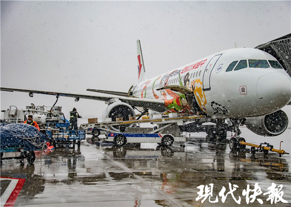 11:00,鵝毛般的大雪籠罩了徐州機場整個機坪。2臺吹雪車同步在跑道上呈人字形推出,發(fā)出振聾發(fā)聵的轟鳴聲,瞬間跑道路面積雪在發(fā)動機尾流的作用下化成了蒸汽。13:37,南京機場機坪上飄起雪花,幾名除冰員站在離地八九米高的除冰車車斗上,緊握近10多公斤的高壓噴槍,在機身、大翼、尾部噴灑除冰液,雙手凍得通紅。