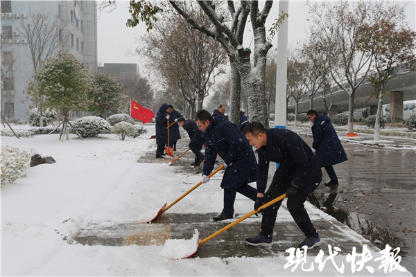 為確保場區(qū)道路暢通,徐州、連云港機場組織機關工作人員手拿鐵鍬、推雪板和掃把等工具,頂著寒風、躬著身子,對外場周圍路段鏟雪。在黨員突擊隊旗幟的照耀下,全體除冰雪隊員形成一個充滿凝聚力和戰(zhàn)斗力的堡壘。