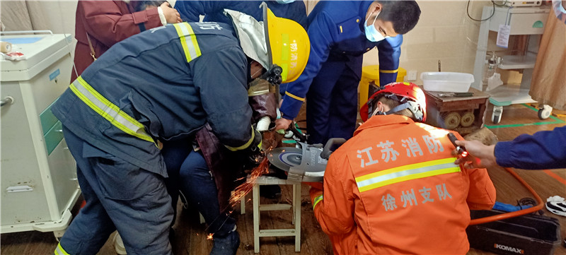 (通訊員 劉詩賀 記者 張曉培)“快快快,快抬進來!”12月30日中午11點,一輛急救車和一輛消防車一前一后開進徐州仁慈醫(yī)院,急救車里一名中年女子跪在急診床上,床上還放著一臺絞肉機。原來,女子的左手被絞肉機死死卡住,所以其家人只好抬著機器就醫(yī)。