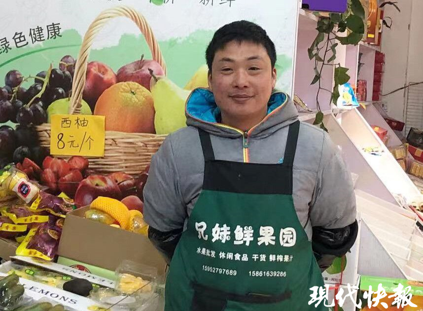 經過多方尋找,大家最終找到了這個好心的藍衣小伙,他叫張艷召,是一名“85后”,現在和妹妹一起經營著一家水果店。