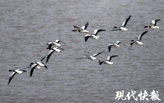 “翹鼻麻鴨系大型鴨科動物,紅色上翹的嘴巴是其顯眼的特征,同時胸前一道棕色環(huán)帶,猶如身佩綬帶的功勛,為我國‘三有’保護動物。”東臺沿海經(jīng)濟區(qū)管委會副主任王衛(wèi)國介紹,由于條子泥濕地生態(tài)環(huán)境不斷優(yōu)化,今年來越冬的翹鼻麻鴨達近千只,數(shù)量遠超往年。