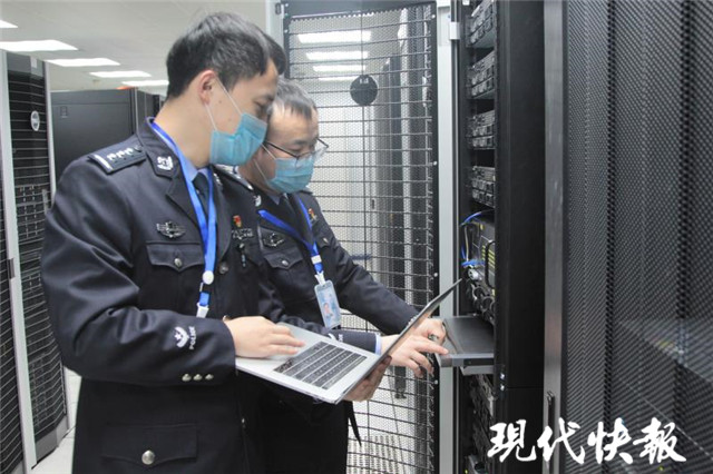 △南京市公安局大數(shù)據(jù)中心民警在測試系統(tǒng)運行情況